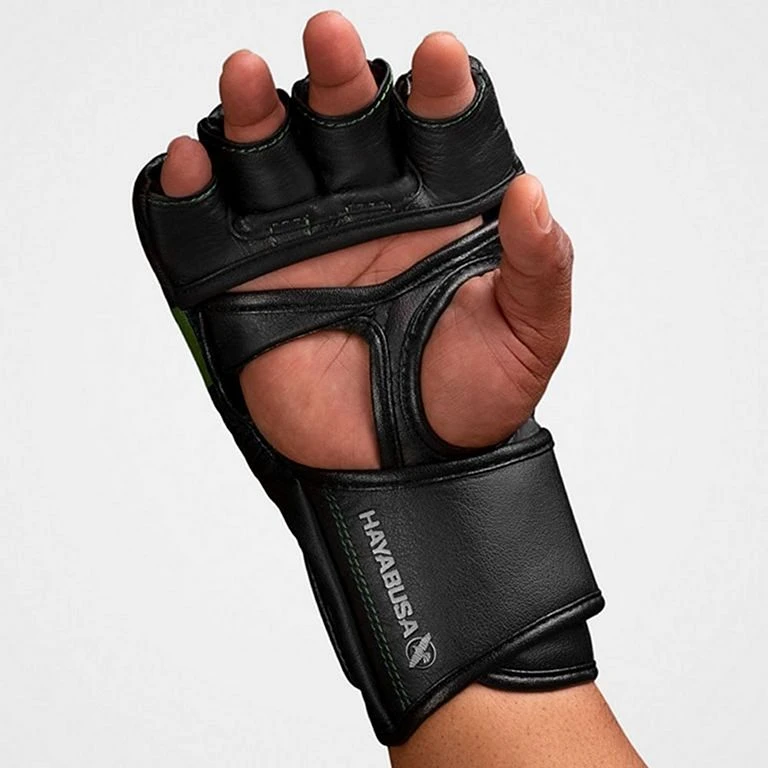 Guanti premium del marchio Hayabusa per la pratica delle arti marziali miste (mma) che hanno una protezione principale sul bracciale formata da un cuscinetto da 4 once.