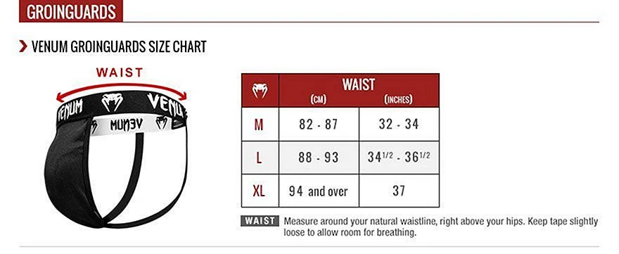 Challenger Groinguard & Support della Venum è un insieme di una conchiglia di polietilene e un sospensorio che può essere utilizzato per qualsiasi sport. Lo scomparto sospensorio, dove è collocata la protezione, è stata realizzata in tessuto Dry Tech, che facilita la traspirazione. Inoltre, la conchiglia protettiva, ha dei fori per facilitare la ventilazione.