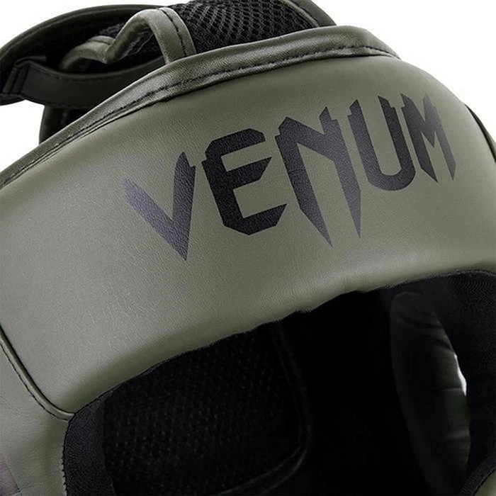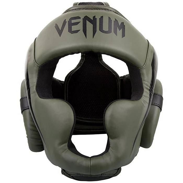 Casco appartenente alla gamma Venum Elite realizzato a mano in Thailandia con pelle sintetica Skintex di alta qualità. Si distingue per avere una schiuma di protezione a tripla densità per un migliore assorbimento degli urti e una costruzione che combina la protezione totale del cranio con una visibilità a 180 gradi.